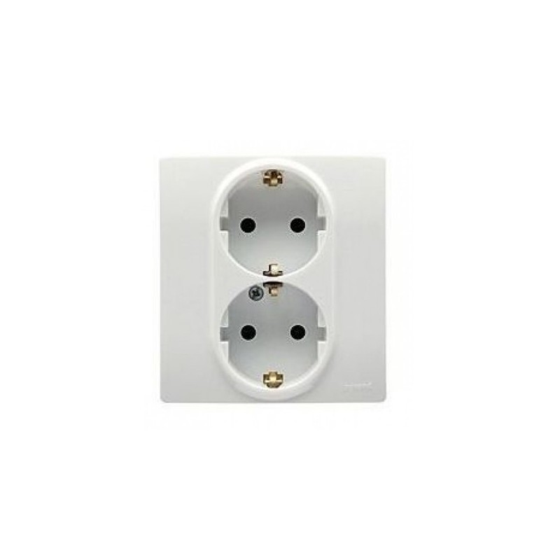 Priza Schuko 2P+T dubla, utilizata pentru conectarea diverselor aparate electrice la reteaua electrica, ce face parte din gama Niloe Legrand.