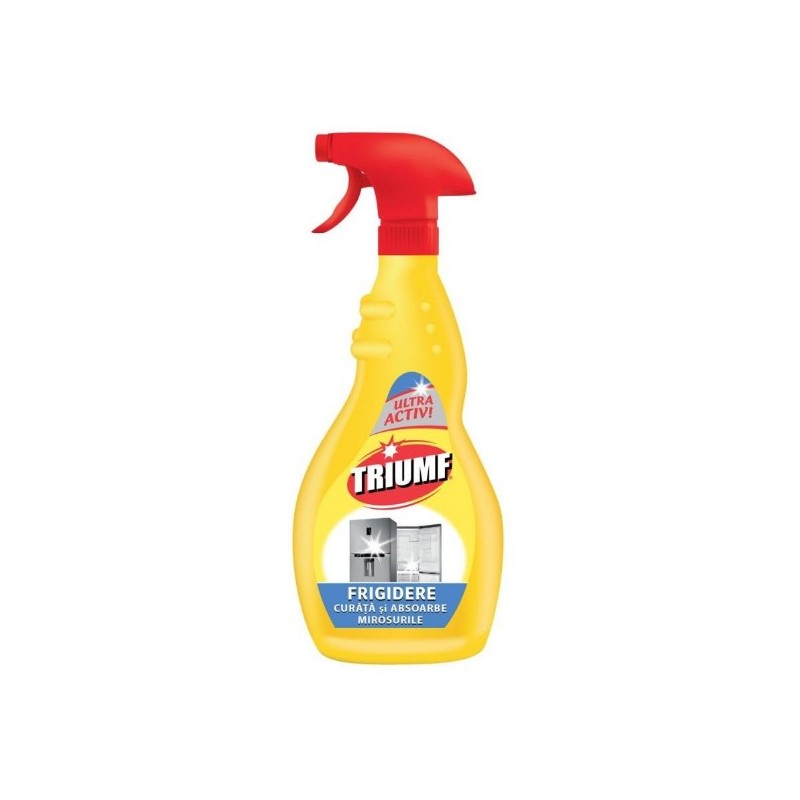Mod de utilizare: Pulverizati interiorul si exteriorul frigiderului. Lasati sa actioneze aproximativ 1 minut dupa care stergeti foarte bine cu o laveta curata si uscata. Nu necesita clatire. Pentru murdaria persistenta lasati produsul sa actioneze mai mult timp sau repetati operatia. Evitati contactul direct cu alimentele. Alimentele se pastreaza acoperite in frigider.