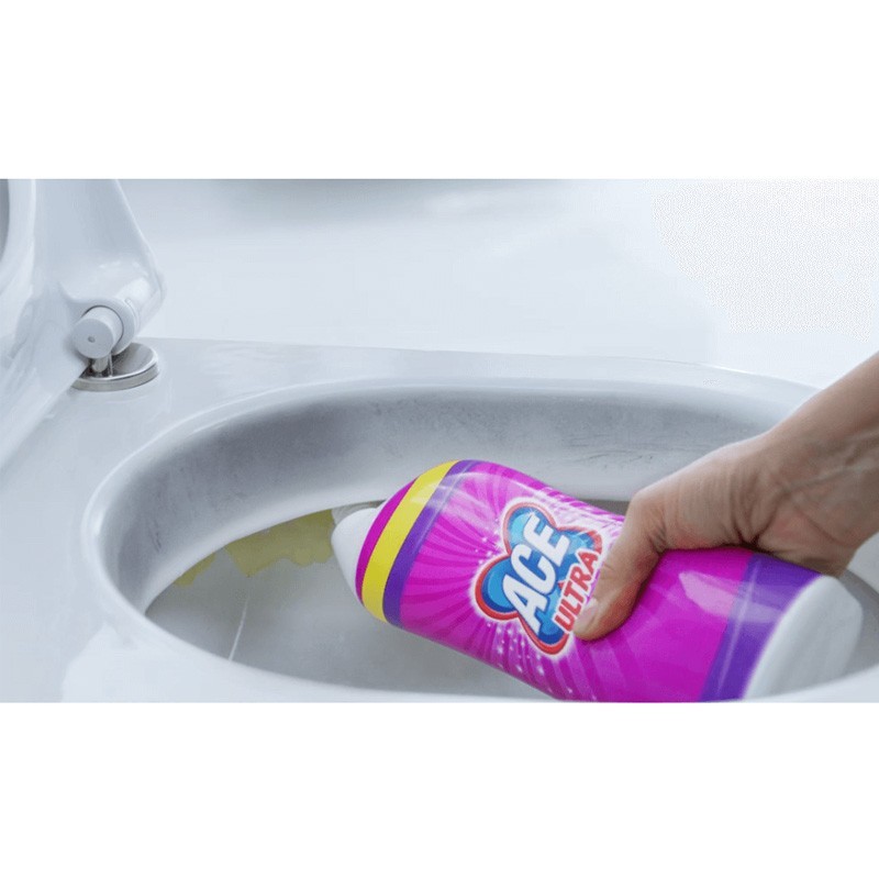 - pentru curatarea carpelor si buretilor de vase, se adauga / se dilueaza 60 ml de ACE Ultra Power Gel in jumatate de galeata de apa. - pentru vasul de toaleta, aplicati produsul pe intreaga suprafata a toaletei incepand de la marginea interioara.