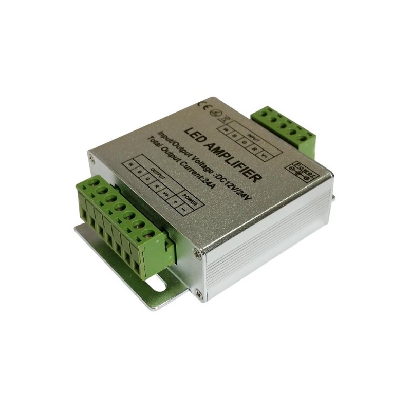 Amplificarea semnalelor RGB pe baza principiului modulării în amplitudine (PWM, Pulse Width Modulation/Semnal Modulat în Amplitudine). Acest tip de amplificator de semnal poate fi utilizat pentru LED-urile RGB, cu montaj anod (+) comun.