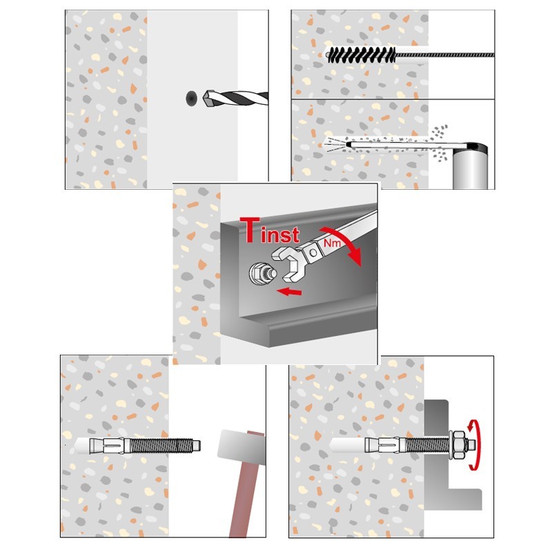 Se utilizeaza in constructii, la fixarile in beton si caramida, suportand solicitari medii si grele.