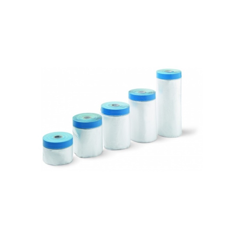 Bandă adezivă de acoperire cu ţesătură albastră, rezistentă UV. Combinația testată și stabilită a unei folii de acoperire / hârtie și a unei benzi adezive pentru o acoperire rapidă și mare a zonelor. Utilizabil interior și exterior.
