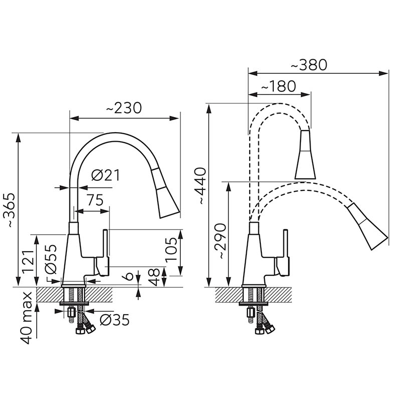 Bateria este fabricată din alamă placată cu crom, pipa flexibila, cartus ceramic 35 mm.