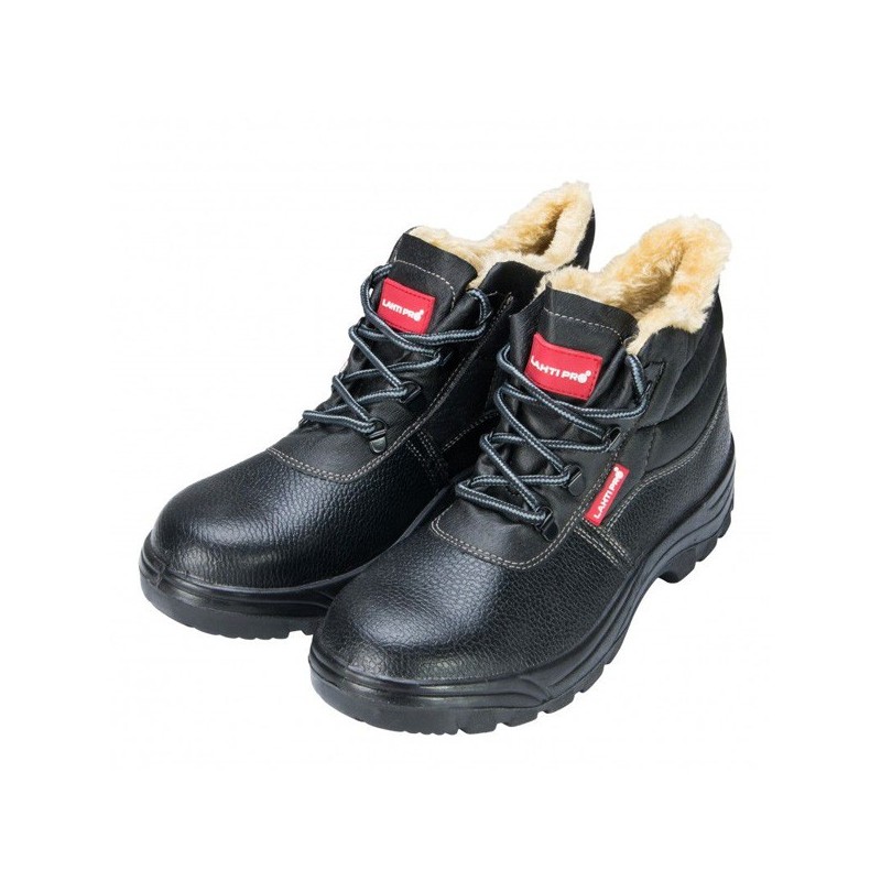 Pantofi de protectie negri, cu bombeu metalic.