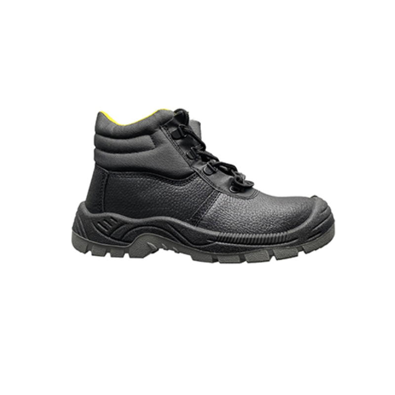 Bocanci de protecție cu bombeu și lamelă anti-perforație din oțel, fețe din piele de bovină impermeabilizate și cu talpă din poliuretan dublă densitate.