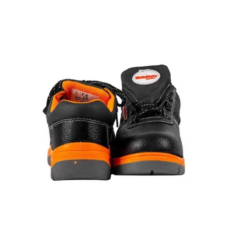 Pantofi de protectie negri, cu bombeu metalic.