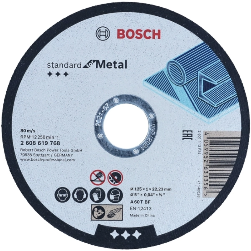 Disc abraziv BOSCH A60 T, 125 x 22.2 x 1 mm, ideal pentru debitarea rapidă și precisă a metalului. Rezistent și durabil, oferă performanță profesională pentru scule electrice, asigurând tăieri curate și eficiente în orice proiect metalic.