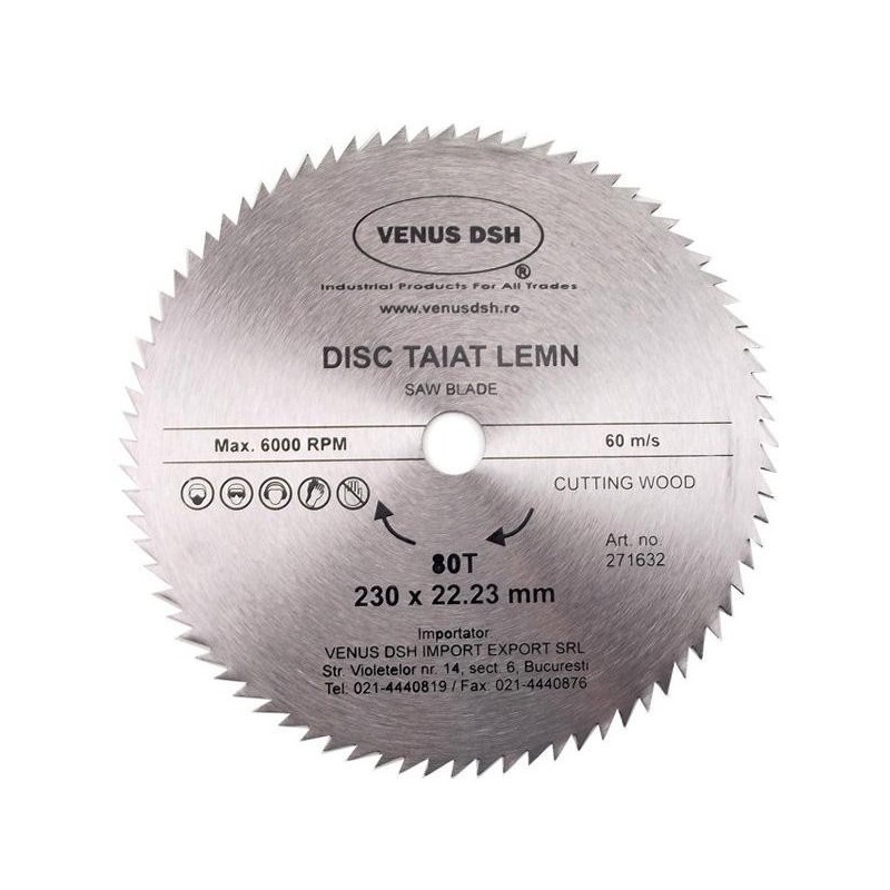 Discurile penru taiat lemn au dantura cu placute din carburi de tungsten cu ascutire alternativa ce conduce la o productivitate sporita in utilizare.