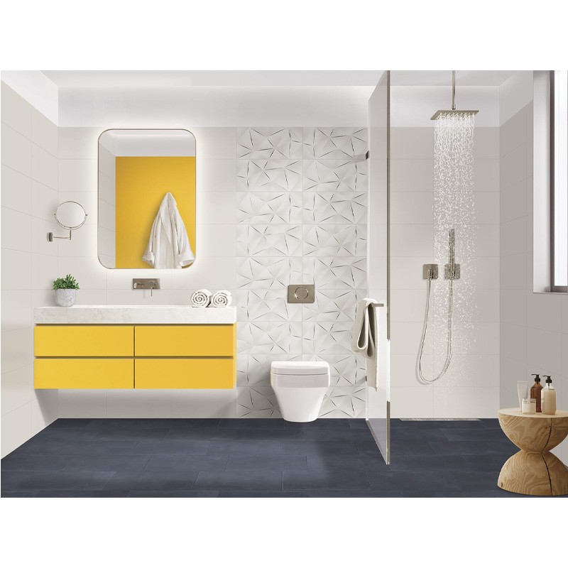 Placa ceramica tip faianta rectificata cu finisaj lucios destinata montarii pe perete.