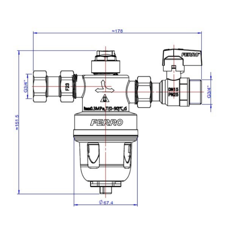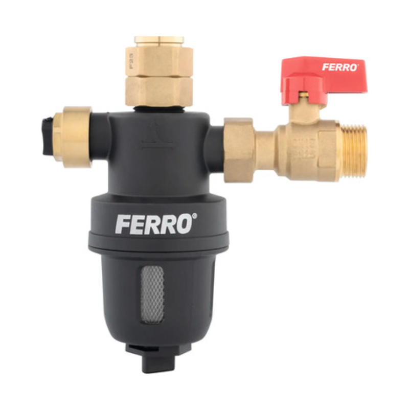 Filtru antimagnetită Ferro 3/4", proiectat pentru protecția centralelor termice și instalațiilor de încălzire. Captează particulele metalice și impuritățile, prevenind depunerile și asigurând randament termic ridicat.