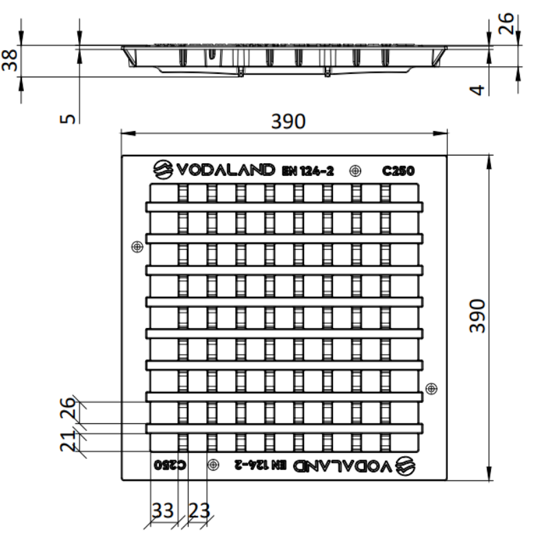 Gratar din fonta tip grila pentru camin patrat 400 x 400 mm, clasa de sarcina 250.