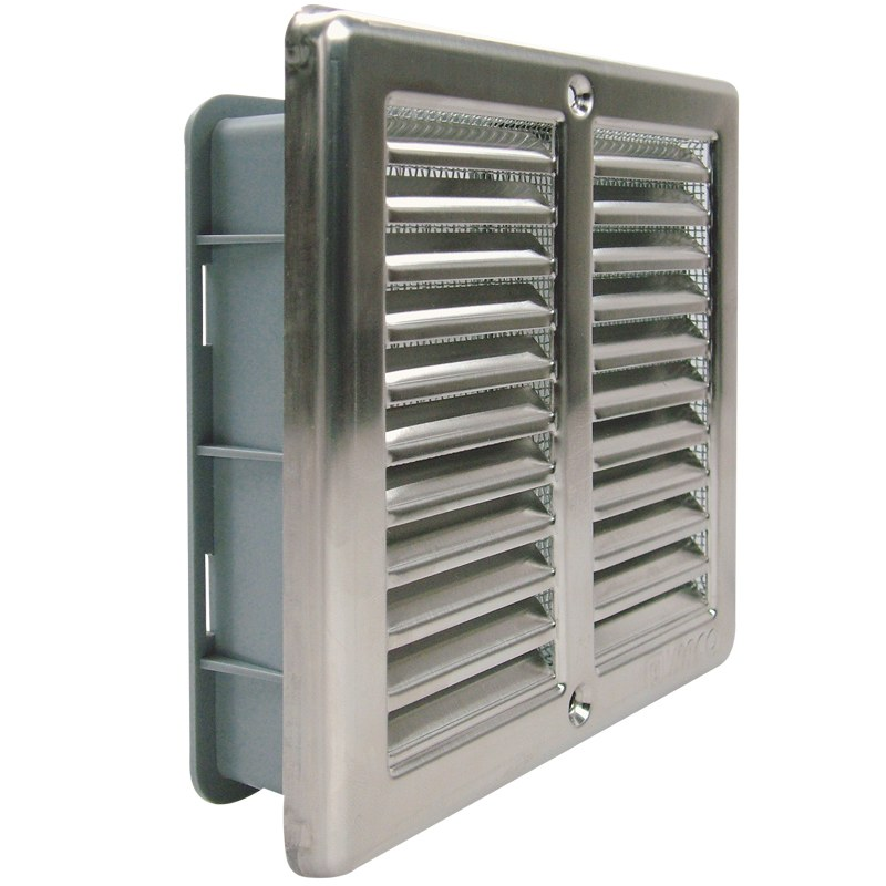Grilă de aerisire din inox 150 x 150 mm, model NVM150 0701, ideală pentru ventilația spațiilor interioare și exterioare. Prevăzută cu plasă de protecție împotriva insectelor, rezistentă la coroziune și condiții meteo dificile. Asigură circulație optimă a aerului și montaj rapid.