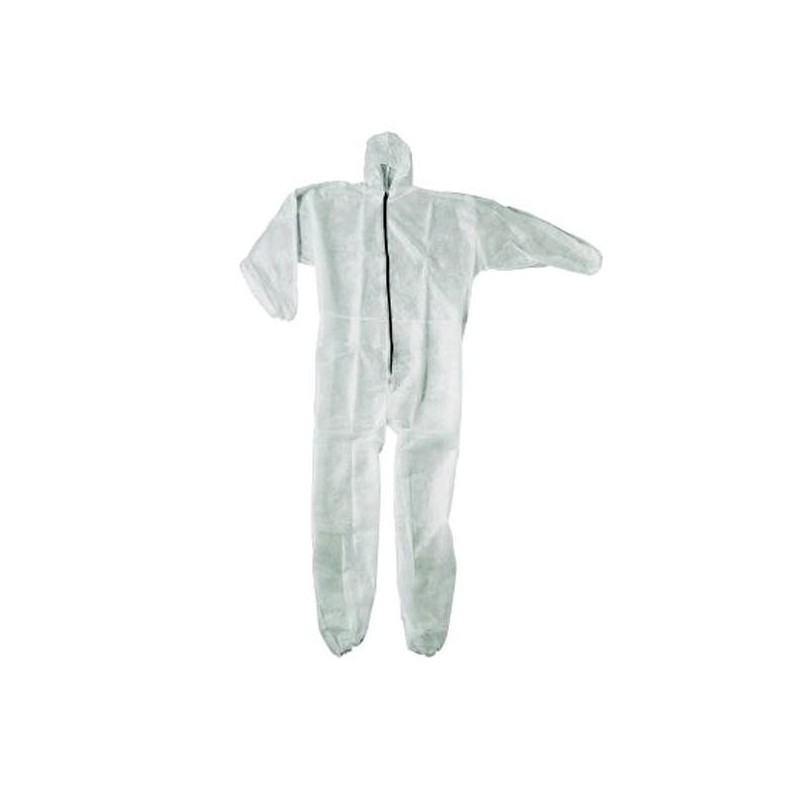Combinezoane de unică folosință din polipropilenă cu guler, fermoar, braț, picior și talie elastică. Categoria 1 pentru protecția împotriva riscurilor minime.