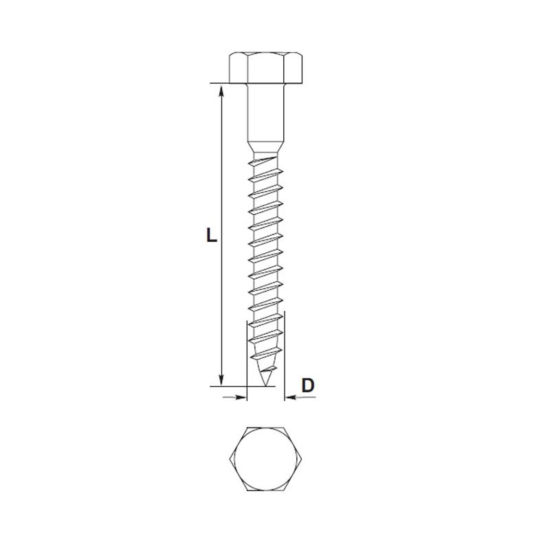 Surub dulgherie zincat din otel - carbon, pentru imbinarea elementelor din lemn.