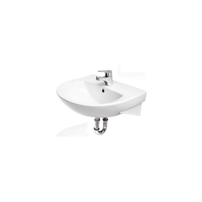 Lavoar President P55 cu orificiu pentru armatura, fixare cu ajutorul suruburilor, cu posibilitate de montaj pe piedestal, semipiedestal sau pe dulap.