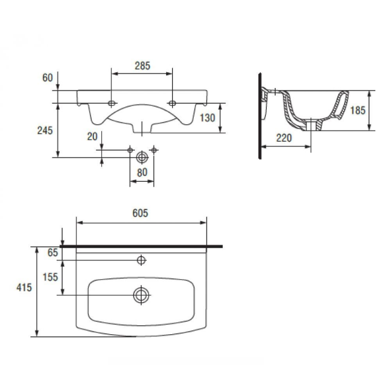 Masca cu lavoar Beatrice 80 X 100 cm, negru cu crom.