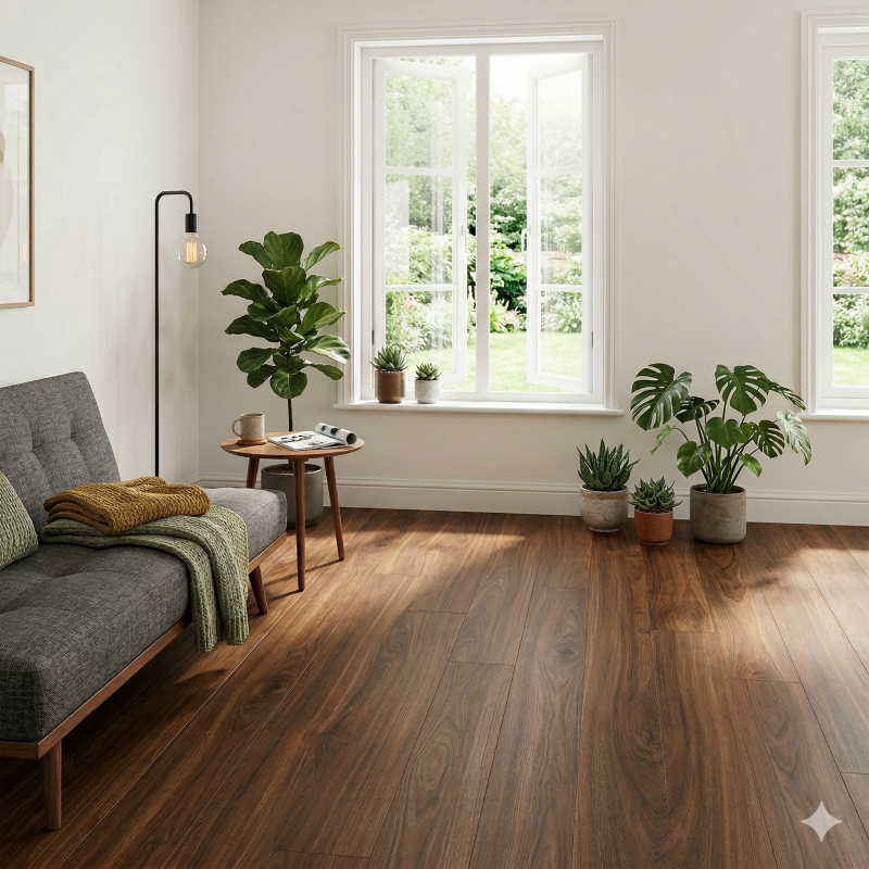 Parchetul laminat Galaxy V4 D1803 are un aspect de lemn inchis la culoare, usor de adaptat unei game vaste de stiluri de amenajari interioare de la clasic la cel minimalist, dand un sentiment de spatiu si eleganta.