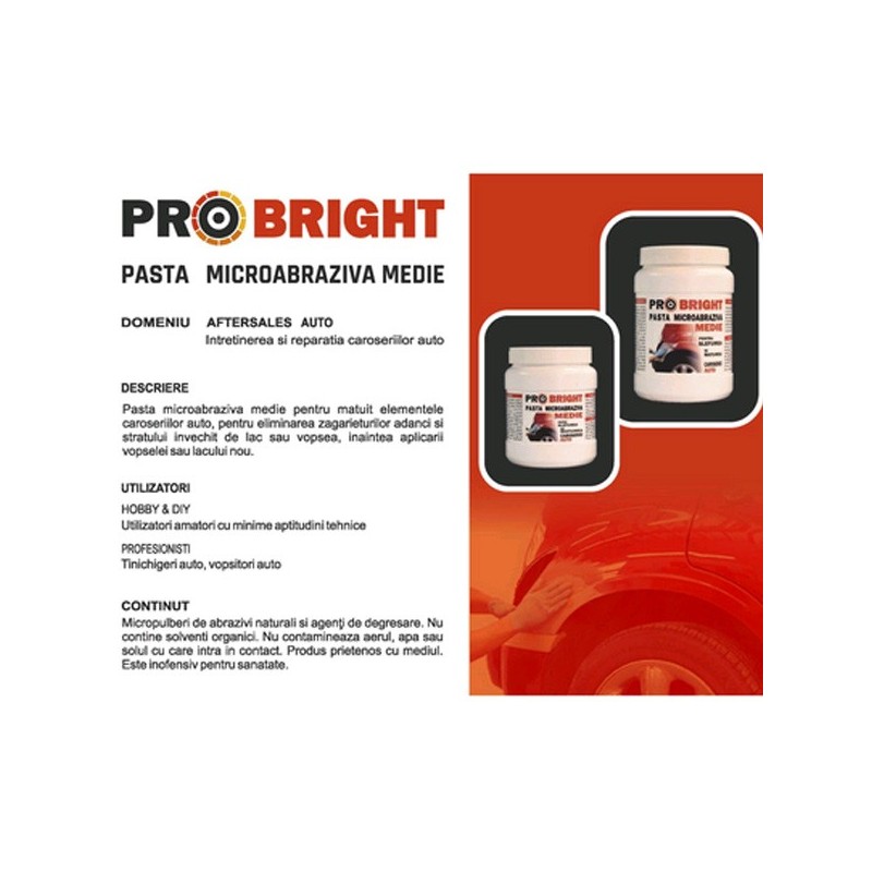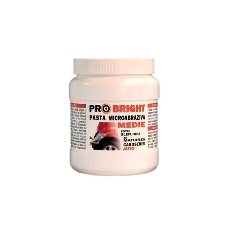 Pasta medie pentru matuit elementele caroseriilor auto, pentru eliminarea zgarieturilor si stratului invechit de lac sau vopsea, inaintea aplicarii vopselei sau lacului nou.