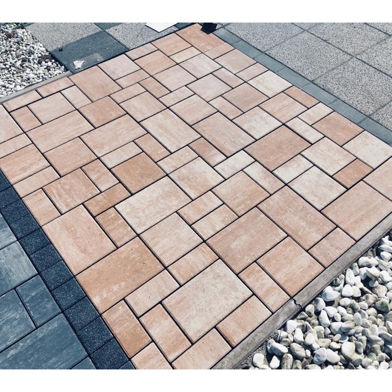 simplitatea formelor şi cromatica discretă si datorită diversităţii formelor şi a culorilor, acesta poate fi combinat cu usurinţă cu alte sisteme de pavaj.