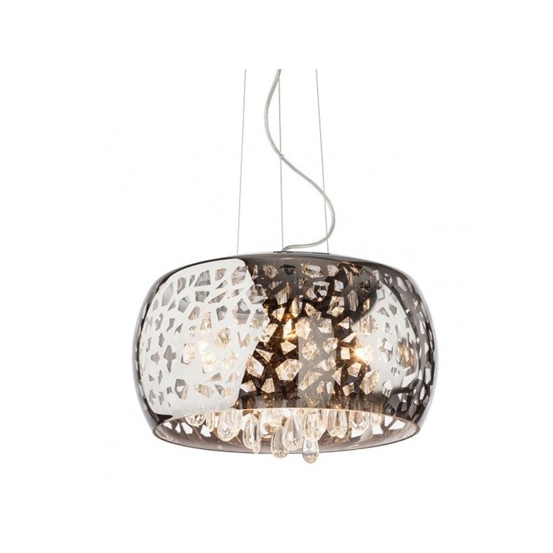 Plafoniera cu structura din metal cromat si 3 dispersoare din impletitura metalica cromata cu decoratiuni din sticla, destinat spatiului interior.
