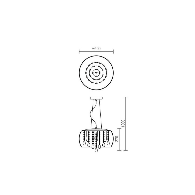 Structura din metal cromat, dispersor din sticla suflata imprimata la cald si decoratiuni din sticla transparenta.
