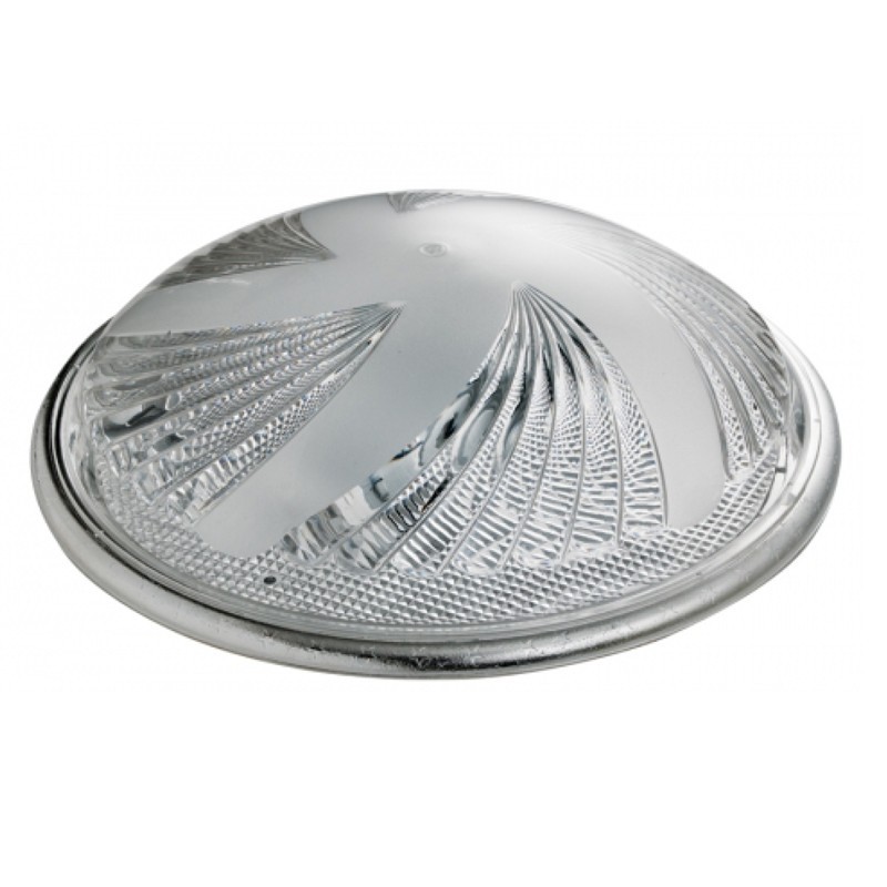 Structura din metal cromat, dispersor din sticla suflata imprimata la cald si decoratiuni din sticla transparenta.