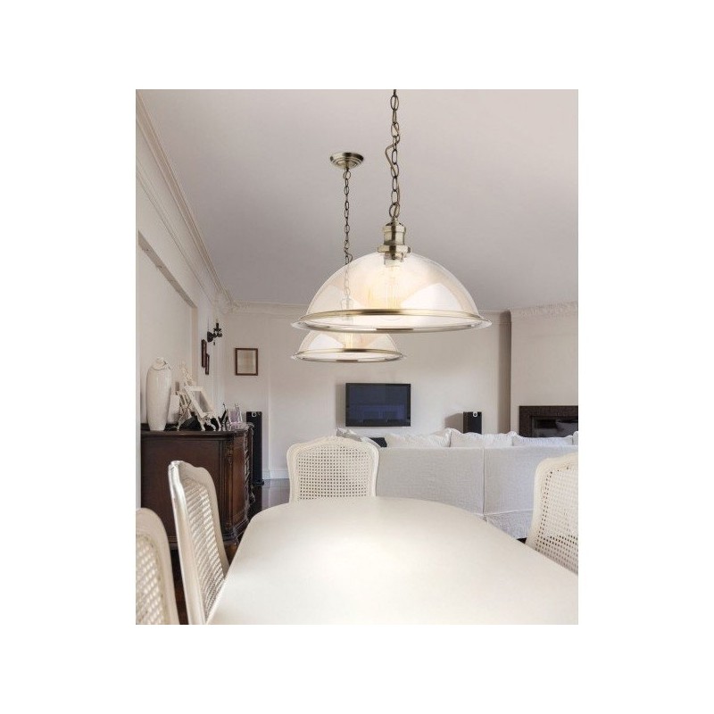 Structura din metal cromat, dispersor din sticla suflata imprimata la cald si decoratiuni din sticla transparenta.