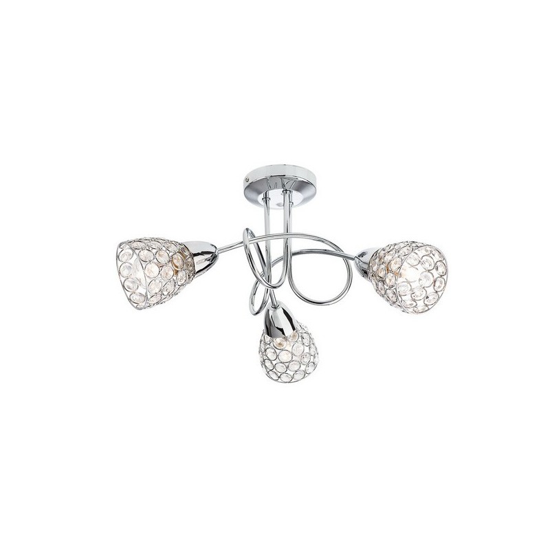 Plafoniera cu structura din metal cromat si 3 dispersoare din impletitura metalica cromata cu decoratiuni din sticla, destinat spatiului interior.