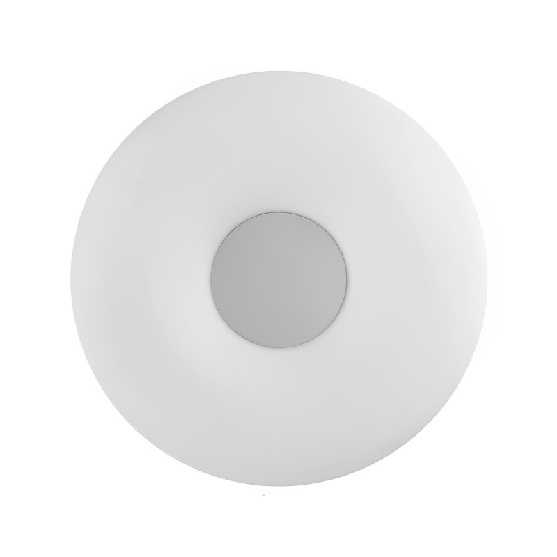 Plafoniera Lunar prezinta montura din metal vopsit alb si dispersor din sticla suflata alb opal cu decoratiune din metal cromat si este recomandata pentru a fi utilizata in baie datorita gradului de protectie la umiditate (IP 44)