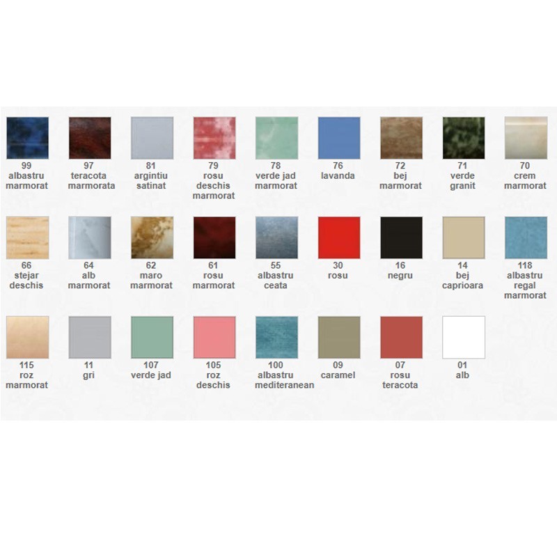 - disponibila intr-o gama variata de culori uni si marmorate, permite asortarea cu baghetele pentru muchii exterioare;