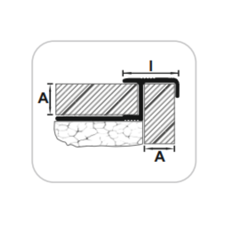Protecţie treaptă cu rizuri, din aluminiu eloxat, culoare bronz satinat, pentru trepte acoperite cu plăci ceramice.