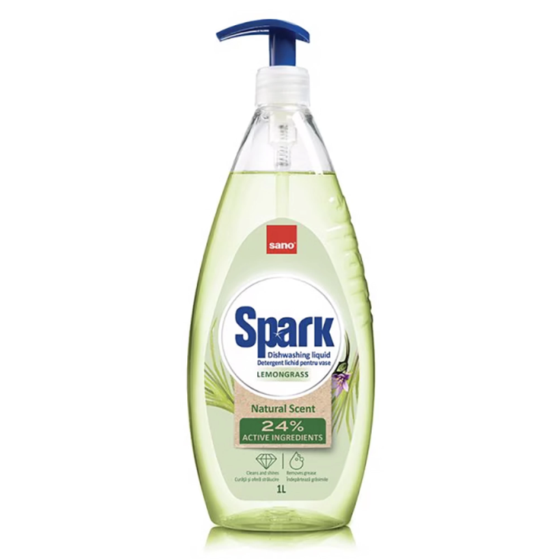 SANO Spark: o picatura este suficienta pentru curatarea unui numar mare de vase si tacamuri datorita formulei puternice! Contine 24% ingrediente active, de calitate, ce asigura o curatare usoara. Este eficient in apa calda, calduta, dar si rece. Are pH neutru astfel incat pielea mainilor dumneavoastra sa nu fie afectata.