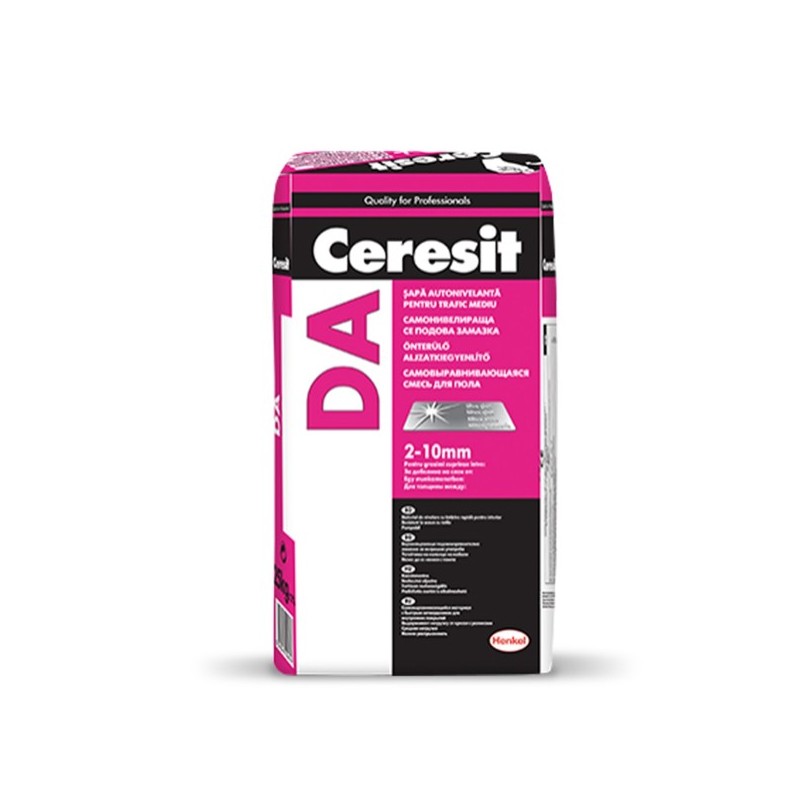 Pentru nivelarea suprafețelor pe bază de ciment se toarnă în straturi de 2-10 mm grosime în vederea acoperirii cu: covor PVC, linoleum, mochetă, pardoseală laminată, plăci ceramice, parchet stratificat. ATENȚIE! Se va aplica doar la interior. Pentru acoperirea cu parchet brut se vor utiliza șapele autonivelante: Ceresit DH maxi sau DD+.