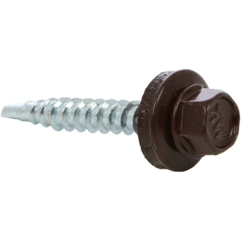Șurub autoforant pentru tablă și acoperișuri 4.8 x 35 mm, vopsit RAL 8017 maro ciocolata. Asigură fixare rapidă și sigură, etanșare eficientă și rezistență la coroziune. Ideal pentru montaj tablă cutată, țiglă metalică și panouri metalice.