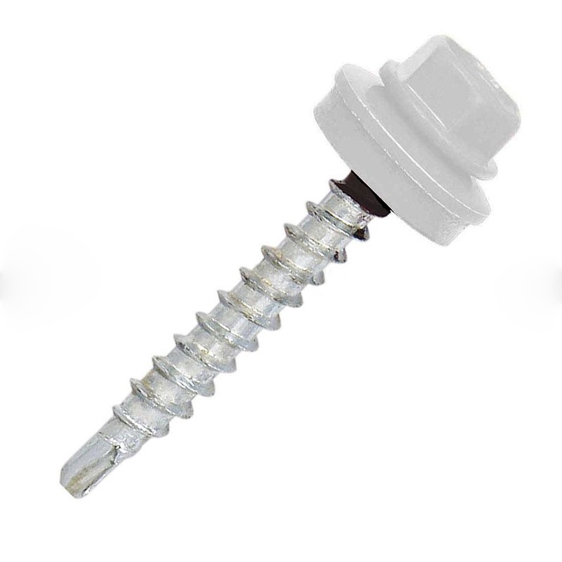 Surub vopsit realizat din otel, autoforant cu varf redus, saiba si cap hexagonal.