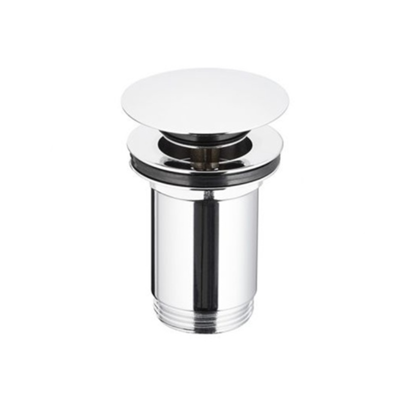Ventil click-clack fără preaplin 1 1/4, ideal pentru lavoare moderne. Ușor de montat, mecanism rezistent, finisaj crom pentru un aspect elegant.