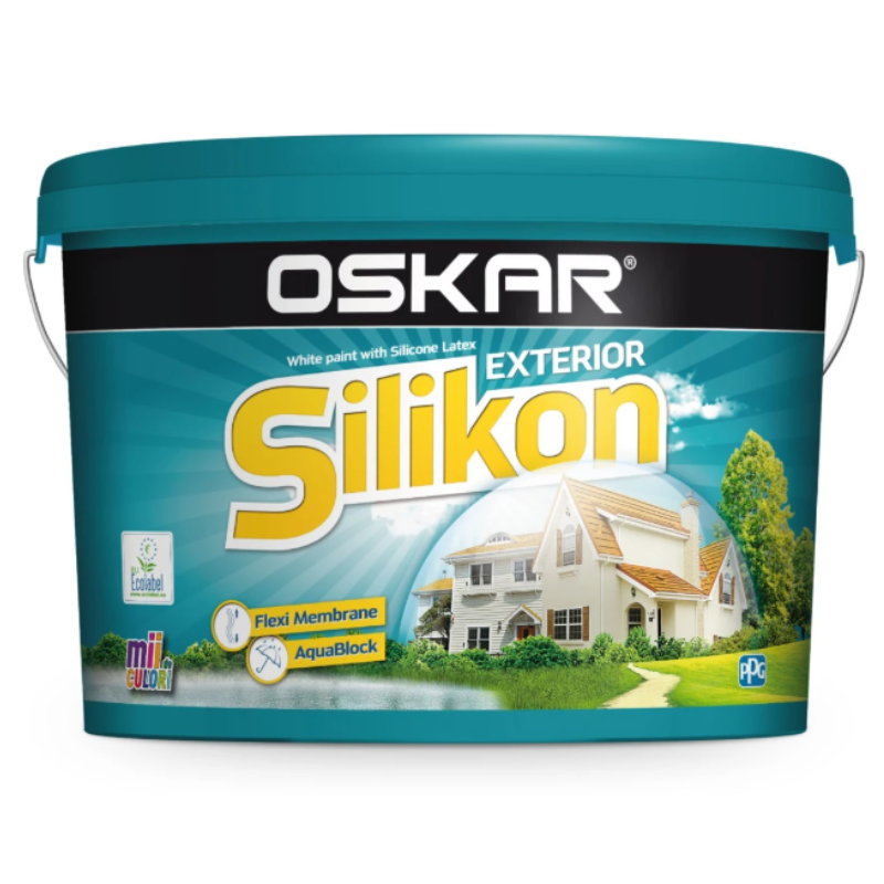 Oskar Silikon 5 L este o vopsea alba siliconata, cu aspect semivascos, omogen, utilizata pentru vopsirea fatadelor sau interioarelor supuse la uzura mare.