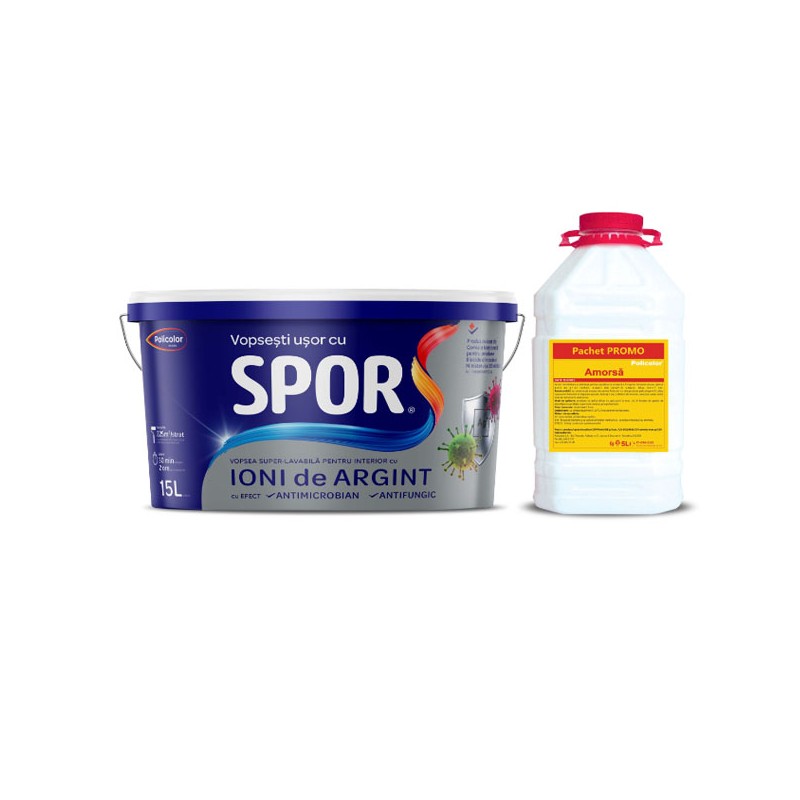 SPOR Vopsea superlavabila pentru interior cu ioni de argint este folosita pentru a distruge microorganismele de orice natura, inclusiv Staphylococcus Aureus (bacteria spitalelor). Este folosita in camere cu umiditate ridicata, dar si pentru institutii medicale, are avizul Ministerului Sanatatii